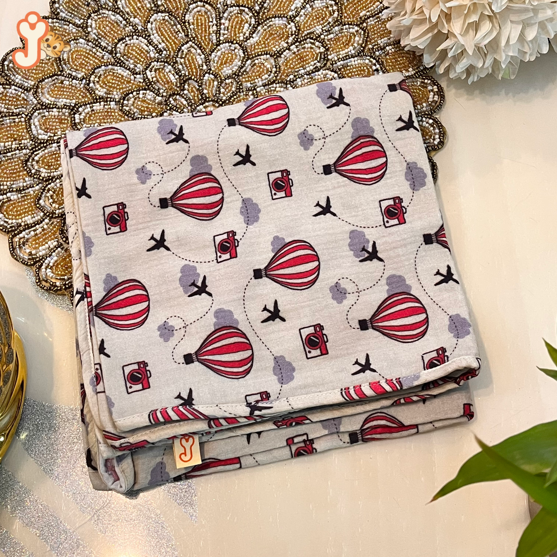 JuniorYou Organic Cotton Muslin Newborn Gift Hamper – Balloon Safari