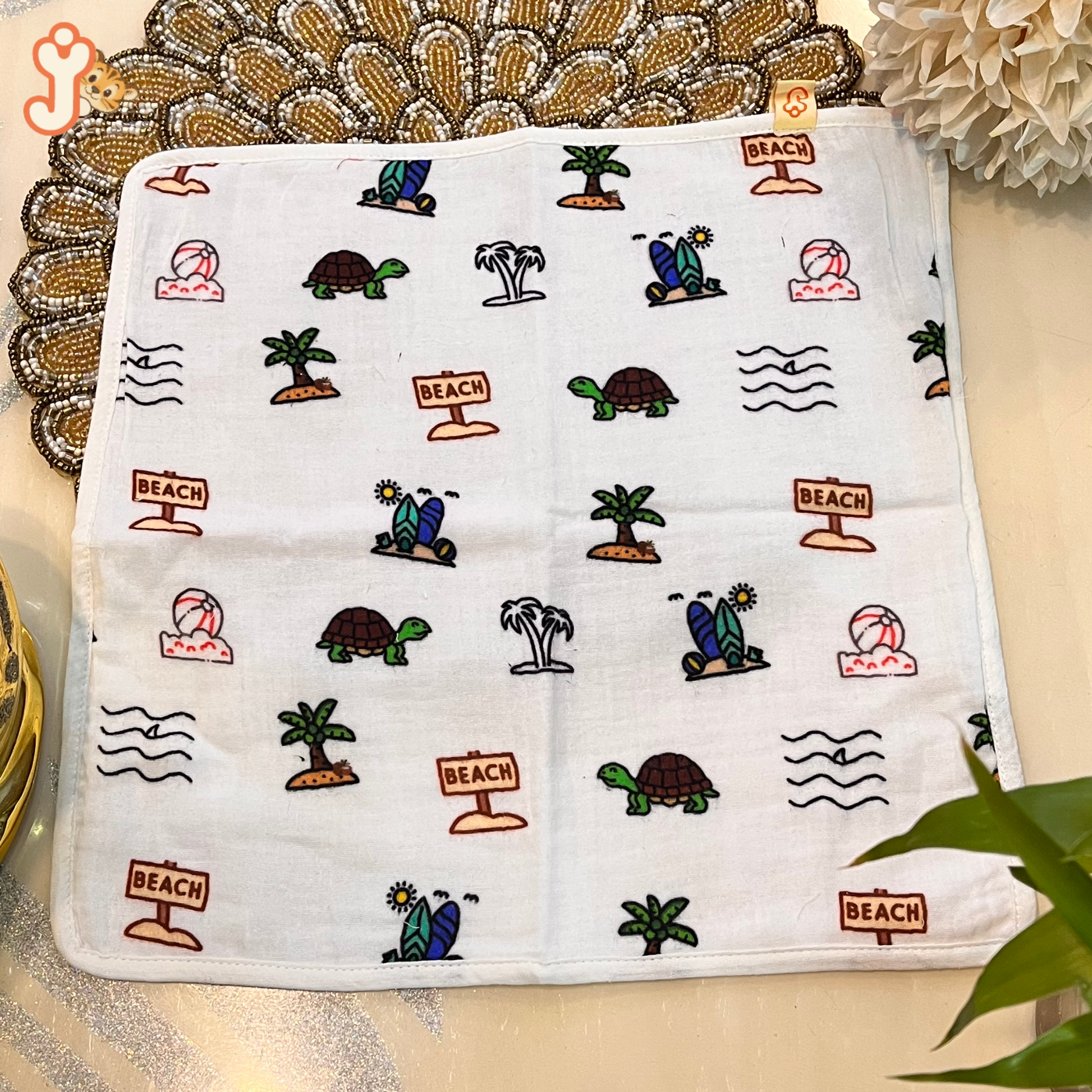 2 Washcloths (32 × 32 cm each): Ultra-soft 4-layer muslin, reversible and absorbent. Ideal for bath-time, mealtime, or quick cleanups.